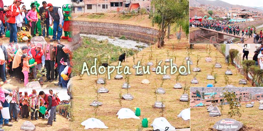 El último sábado 23 de setiembre, Día de la Primavera, junto a las Asociaciones de vivienda Vallecito, Rosaura y las Palmeras, límite de los distritos de Wanchaq, Santiago y San Sebastián y contando con la presencia de autoridades locales como el Gobernador Regional Cusco, el Prefecto del Departamento, la Defensoría del Pueblo, los alcaldes distritales de Santiago, Wanchaq, San Sebastián, San Jerónimo y Saylla, además de numerosas delegaciones de Asociaciones de vivienda y delegaciones estudiantiles, se llevó a cabo una emotiva ceremonia para asumir el compromiso de “adoptar un árbol”, en el marco de una campaña de forestación y reforestación en el ámbito de la cuenca del Río Huatanay.