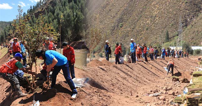 Con la participación de los estudiantes de la Facultad de Enfermería de la Universidad Andina Cusco y los escolares de la institución educativa San Martín de Porres de Saylla, el PER IMA que ejecuta el Proyecto Río Huatanay desarrolló la campaña de reforestación en la zona de Angostura del distrito de Saylla.