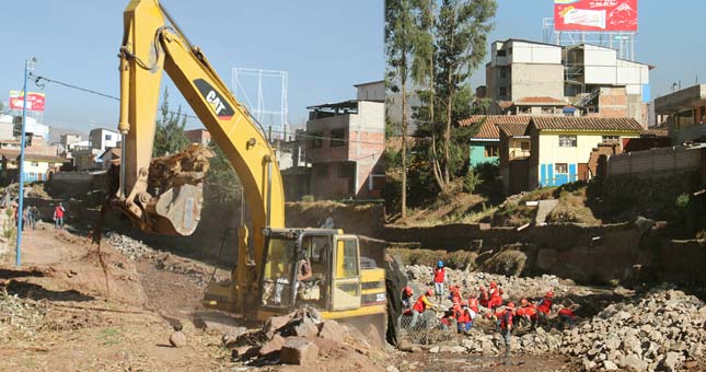 Con el objetivo de proteger la vida de las personas, sus bienes y el medio ambiente, el PER - IMA, avanza a paso acelerado las obras de protección, seguridad y acondicionamiento paisajísticos que contribuirán a mejorar la calidad de vida de las familias que habitan en las riberas y zonas aledañas al río Huatanay.