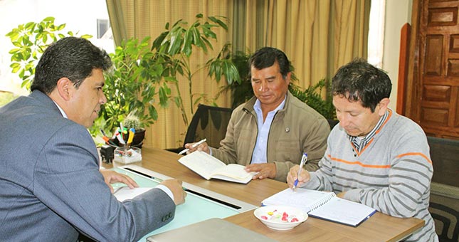 El alcalde de la Municipalidad Distrital de Huayllabamba, Provincia de Urubamba, señor Julio Llallipuma Carazas, en visita protocolar realizada al Director Ejecutivo del Instituto de Manejo de Agua y Medio Ambiente, Ing. Iván Aparicio Arenas, luego de explicar los antecedentes de la gestión sostenible de recursos naturales y diversidad biológica en su jurisdicción, específicamente de la situación de la laguna de Yanacocha, solicitó la intervención del PER-IMA para mejorar el sistema de riego, que tanta falta hace a los agricultores de la zona.