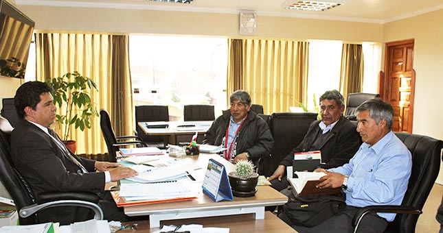Con el propósito de implementar convenios interinstitucionales con las diversas municipalidades de la región para la ejecución de proyectos enmarcados en gestión de riegos, el Director Ejecutivo del Proyecto Especial Regional Instituto de Manejo de Agua y Medio Ambiente - IMA Ing. Iván Aparicio Arenas, mantiene coordinaciones con burgomaestres de la región. En esta ocasión sostuvo una reunión con el Alcalde de la Municipalidad Provincial de Chumbivilcas Abg. David Vera Castillo.