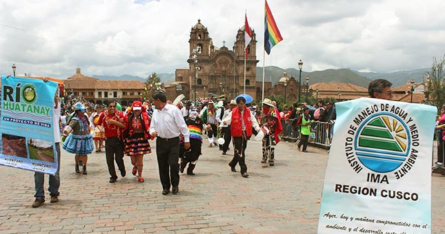 El Proyecto Río Huatanay ejecutado por el Instituto de Manejo de Agua y Medio Ambiente (IMA), participo con la Alegoría “El Pueblo protege su río, el proyecto Construye su esperanza”; en el Pasacalle organizado por la EMUFEC por carnavales; con el objetivo de sensibilizar la población sobre la importancia del cuidado del río Huatanay.