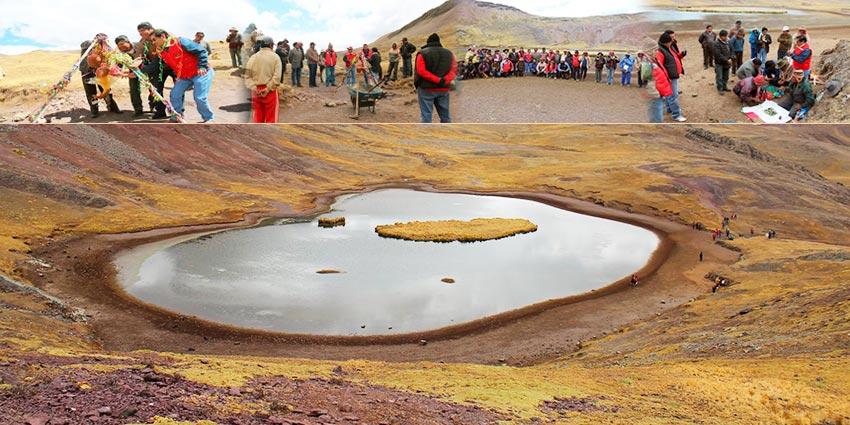 Siguiendo con los trabajos enmarcados en el proyecto: “Adaptación al cambio climático – Cosecha de Agua en microcuencas lacustres en las cuencas del alto Vilcanota y media del río Apurímac”, el Ing. Germán Mendoza Morales, Director Ejecutivo del Proyecto Especial Regional Instituto de Manejo de Agua y Medio Ambiente - IMA, en compañía del Abg. Teodosio Cruz, alcalde distrital de Pitumarca, y pobladores de diferentes comunidades realizaron el acto de colocación de la Primera Piedra para el Represamiento de la laguna de Quellhuaccocha, ubicada a más de 4 mil m.s.n.m. en el distrito de Pitumarca en la provincia de Canchis.