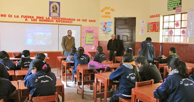 Cumpliendo con el objetivo de sensibilizar a los beneficiarios y a la población en general, el PER Instituto de Manejo de Agua y Medio Ambiente - IMA desarrolló la presentación del Proyecto Río Huatanay en la Institución Educativa Antonio Raimondi del distrito de Saylla, dirigido a los alumnos del 4to año de secundaria y los maestros tutores.