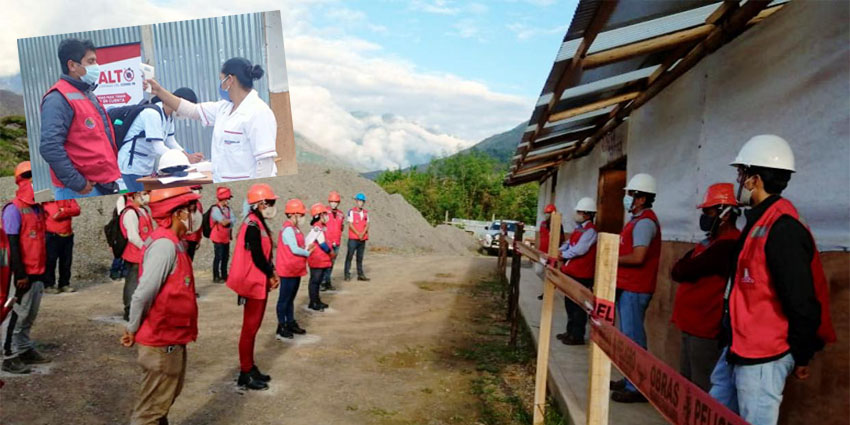 Durante las charlas impartidas por el residente de obra, Ing. Isaac Lloclla manifestó que a los obreros antes de iniciar con los trabajos diarios, se les da alcances sobre los protocolos de sanidad “Todas las mañanas, el encargado se seguridad y salud en el trabajo les indica a os obreros sobre el cumplimiento estricto del protocolo como es el distanciamiento social, el uso obligatorio de mascarillas, lavado permanente de manos entre otras” indicó el profesional.