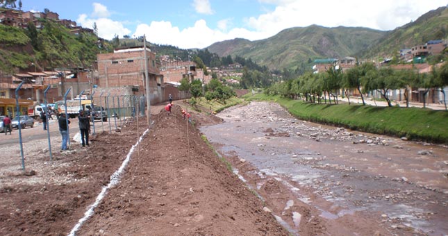 Para reducir la vulnerabilidad de la zona en mención, se realizan trabajos de defensa ribereña con el perfilamiento de los terraplenes que serán re vegetados con cepellones de kikuyo y simultáneamente se emprenderá acciones de reforestación con plantones de Sauce llorón, huaranhuay, kantu, especies muy bien adaptada en la micro cuenca Huancaro.